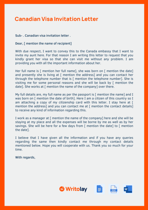 Canadian Visa Invitation Letter 4 Templates Writolay